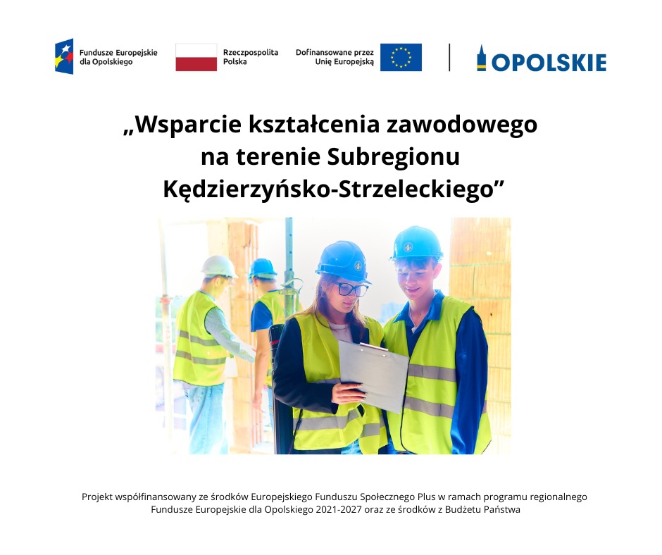 Zapraszamy uczniów Zespołu Szkół nr 1 im. Powstańców Śląskich w Kędzierzynie-Koźlu do udziału w projekcie partnerskim Powiatu Kędzierzyńsko-Kozielskiego z Powiatem Strzeleckim pt.:„Wsparcie kształcenia zawodowego na terenie Subregionu Kędzierzyńsko-Strzeleckiego” w ramach programu regionalnego Fundusze Europejskie dla Opolskiego 2021-2027, Priorytet: 05 Fundusze Europejskie wspierające opolski rynek pracy i edukację. Działanie: 05.09 Kształcenie zawodowe.