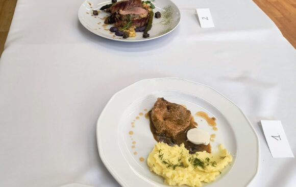 Zadanie konkursowe polegało na przygotowaniu dwóch porcji dania głównego ze schabu b/k. z dowolnymi dodatkami zapewnionymi przez organizatora. Uczniowie popisali się kreatywnością, wyobraźnią i wyczuciem smaku, które oceniło Jury.