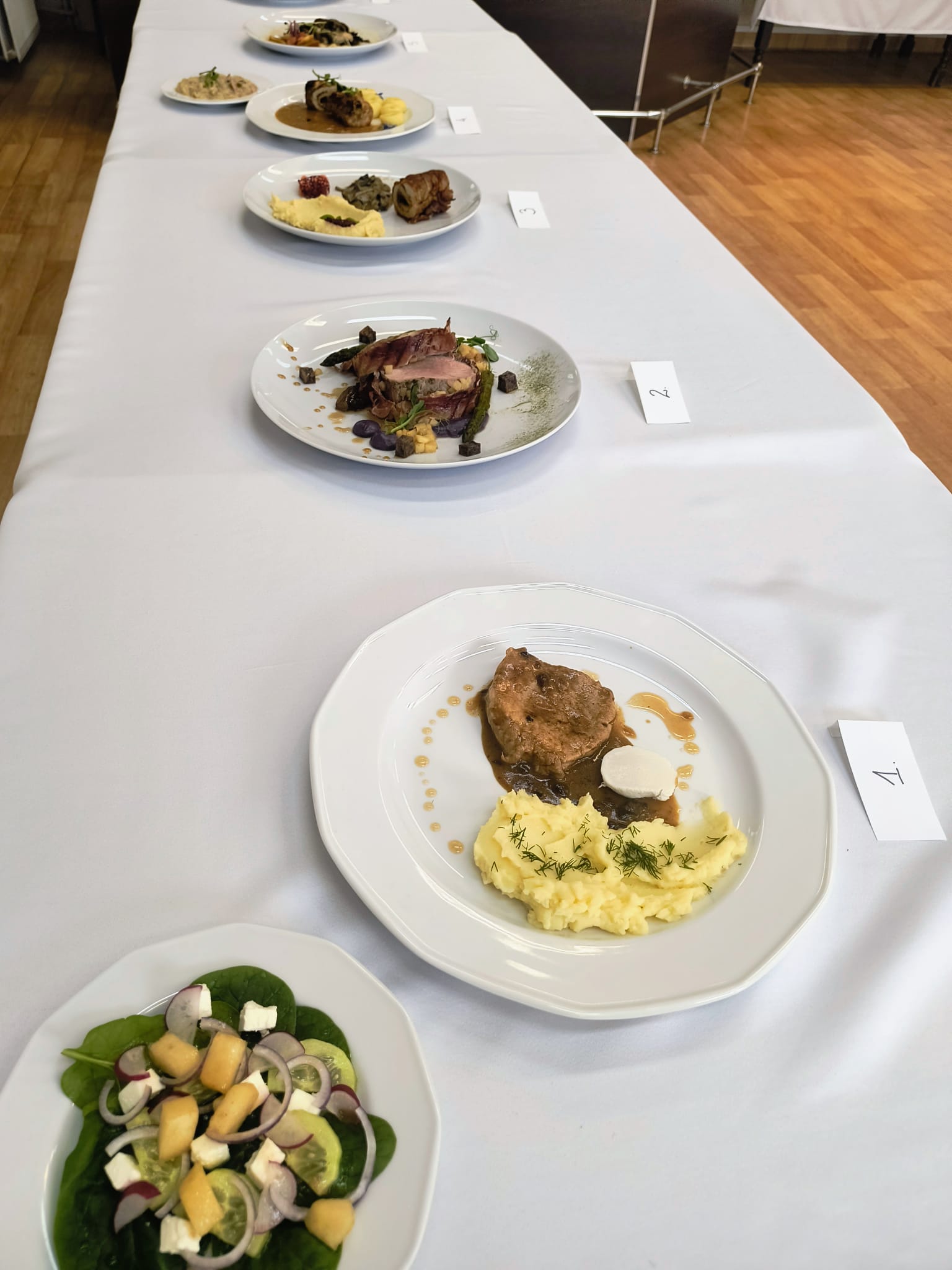 Zadanie konkursowe polegało na przygotowaniu dwóch porcji dania głównego ze schabu b/k. z dowolnymi dodatkami zapewnionymi przez organizatora. Uczniowie popisali się kreatywnością, wyobraźnią i wyczuciem smaku, które oceniło Jury.